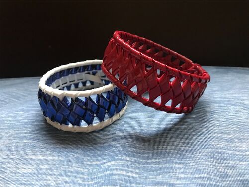 本職はカバンを作る人、竹です。 久々に(リハビリを兼ねて)バングルをつくりました。 色々と制約があるんだけど、面倒だからそのままアップしました(笑) 今回作ったのはこれからも使うであろう白紺。 この前一度作って、サイズを間違えてまう失態を起こ…
